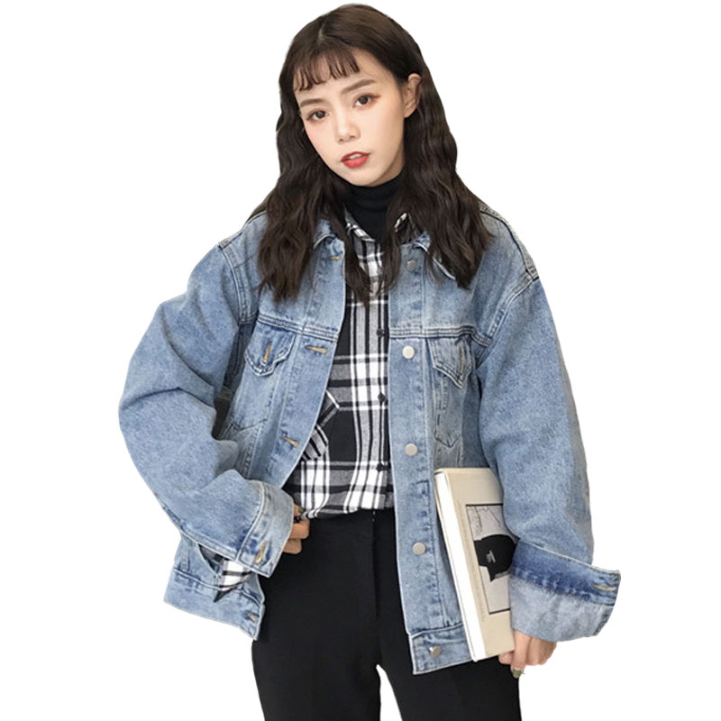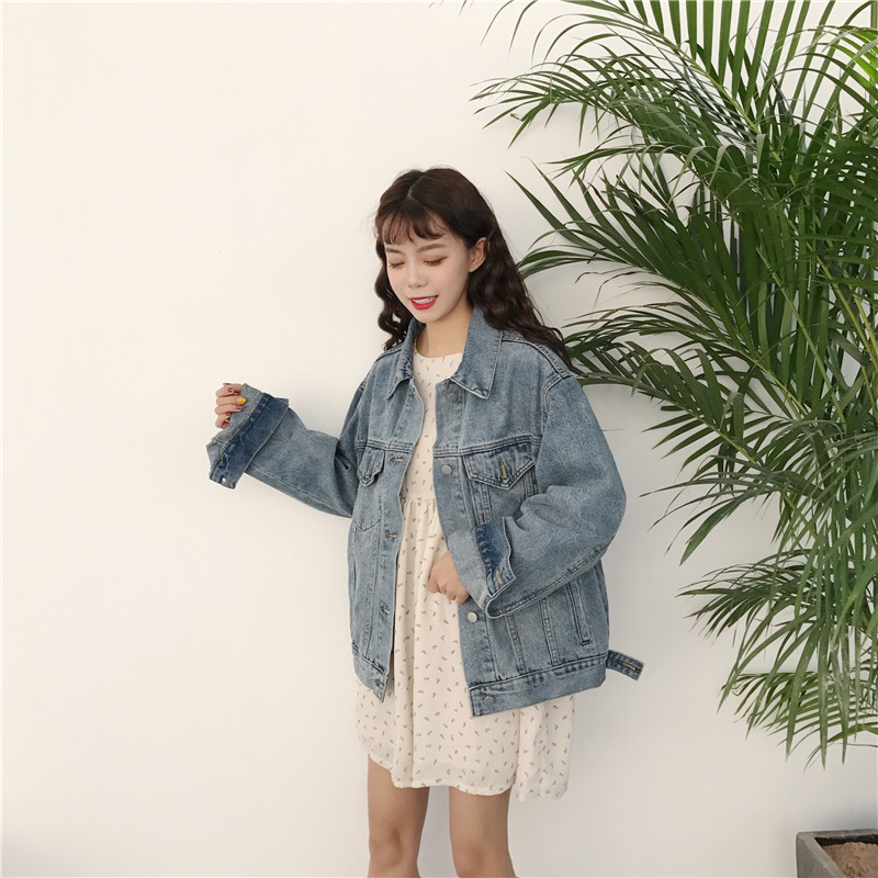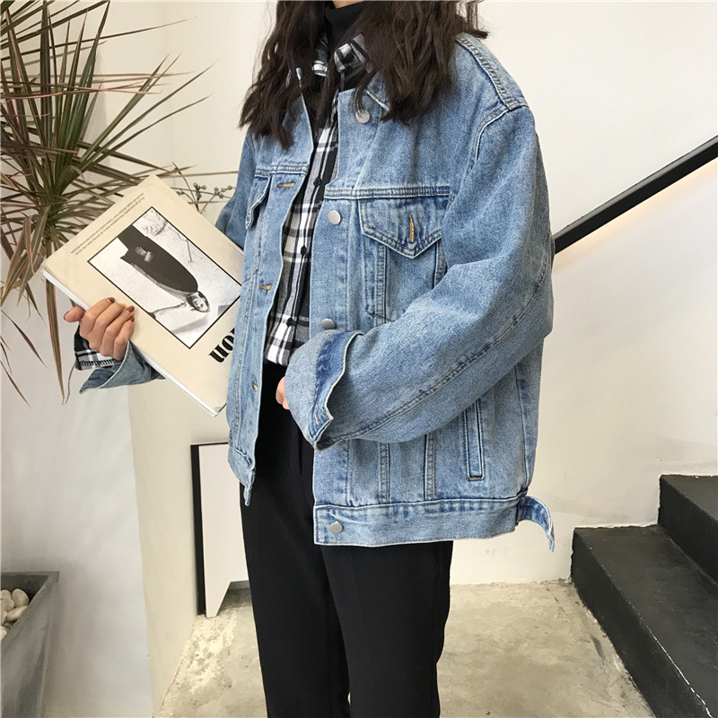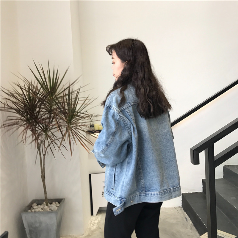 / 秋裝女裝韓版寬松原宿風外套復古做舊學生短款長袖牛仔夾克上衣潮