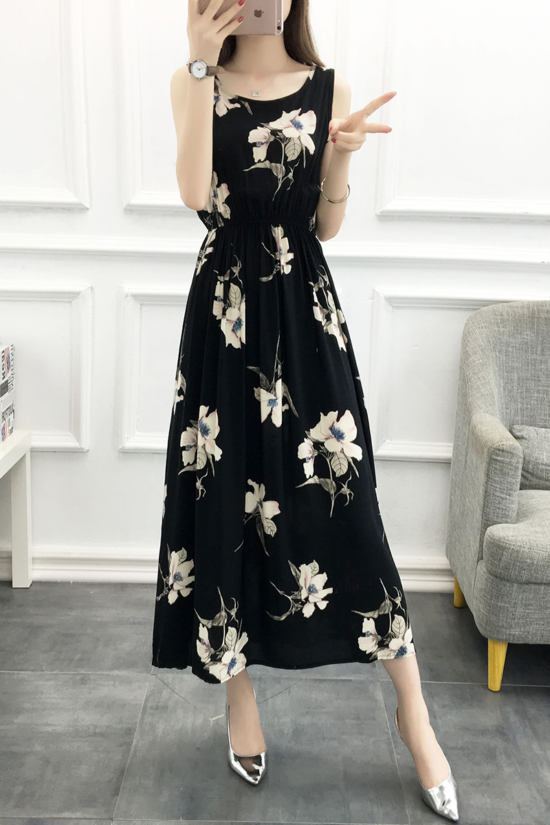 / 長裙女夏2017新款氣質韓版修身松緊腰中長款無袖吊帶碎花連衣裙子