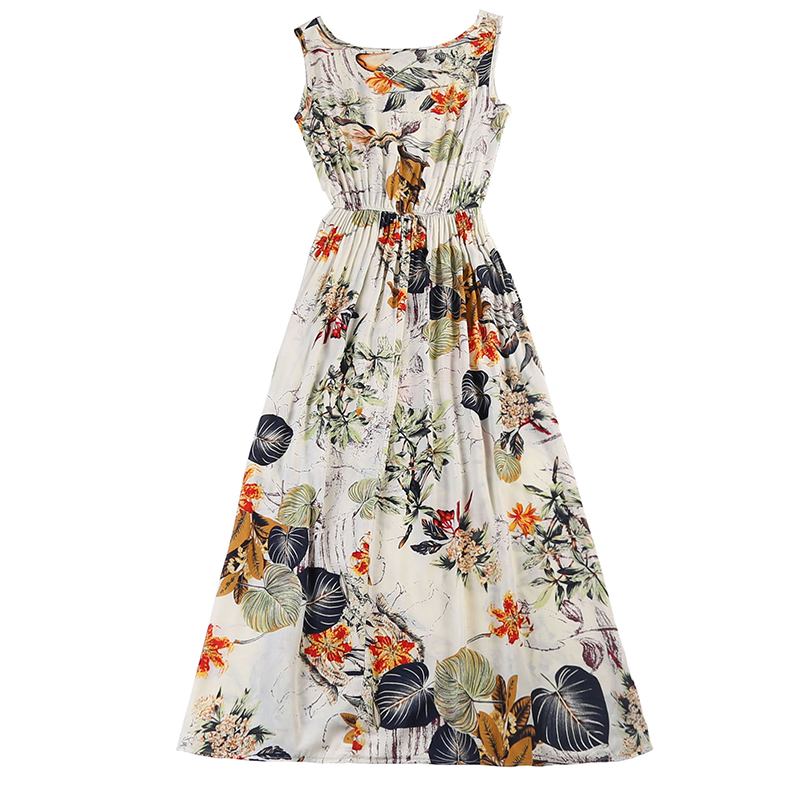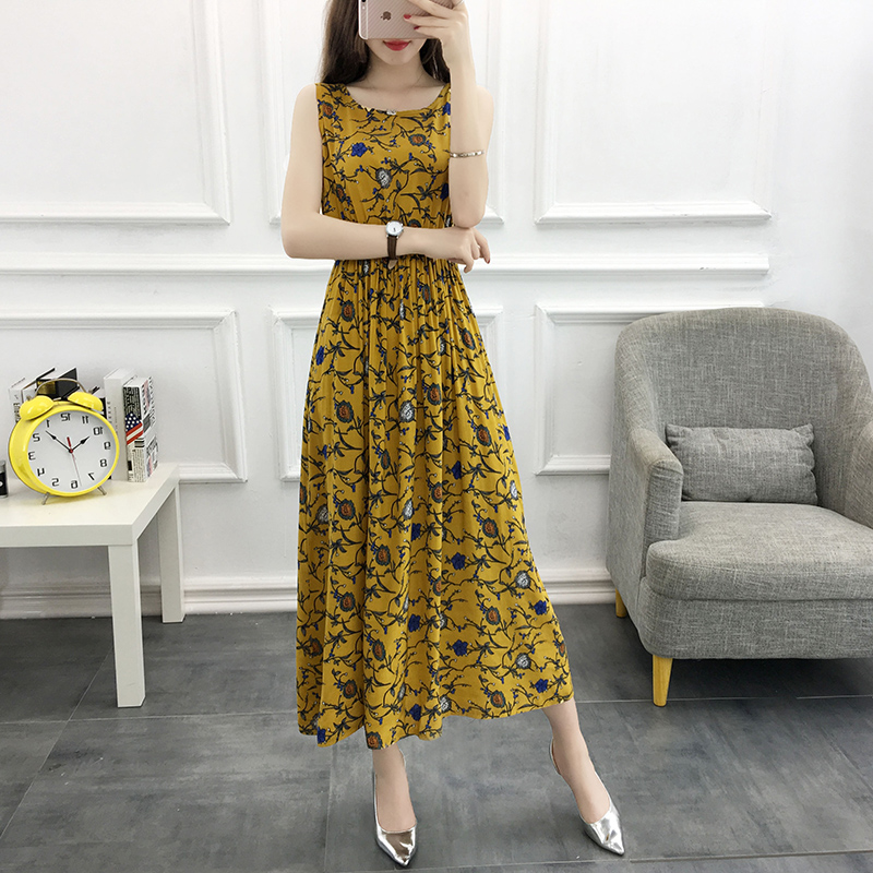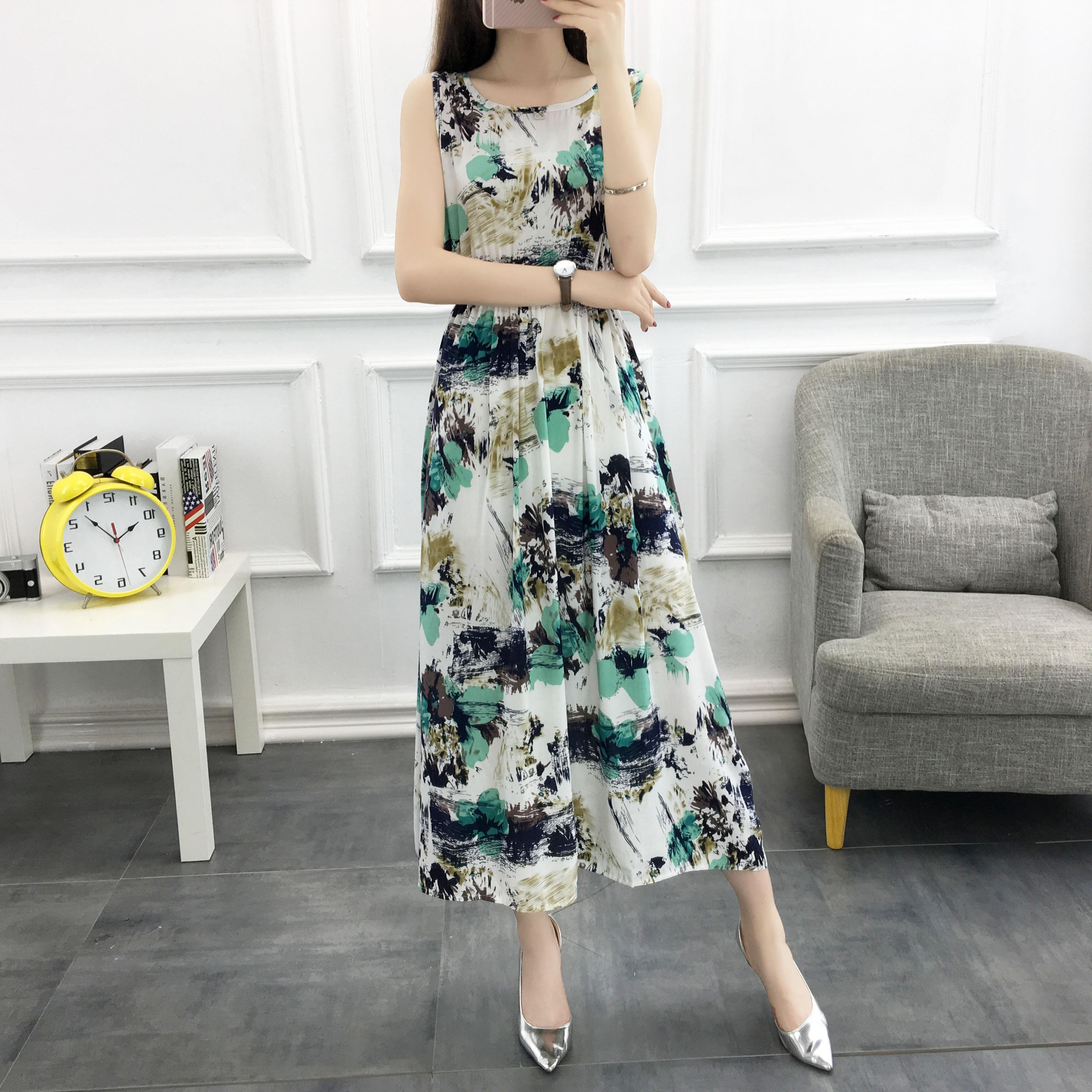 長裙女夏2017新款氣質韓版修身松緊腰中長款無袖吊帶碎花連衣裙子