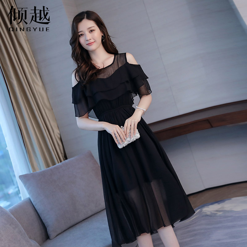 / 歐洲站2017夏季新款女裝韓版時尚露肩雪紡連衣裙仙女氣質顯瘦裙子