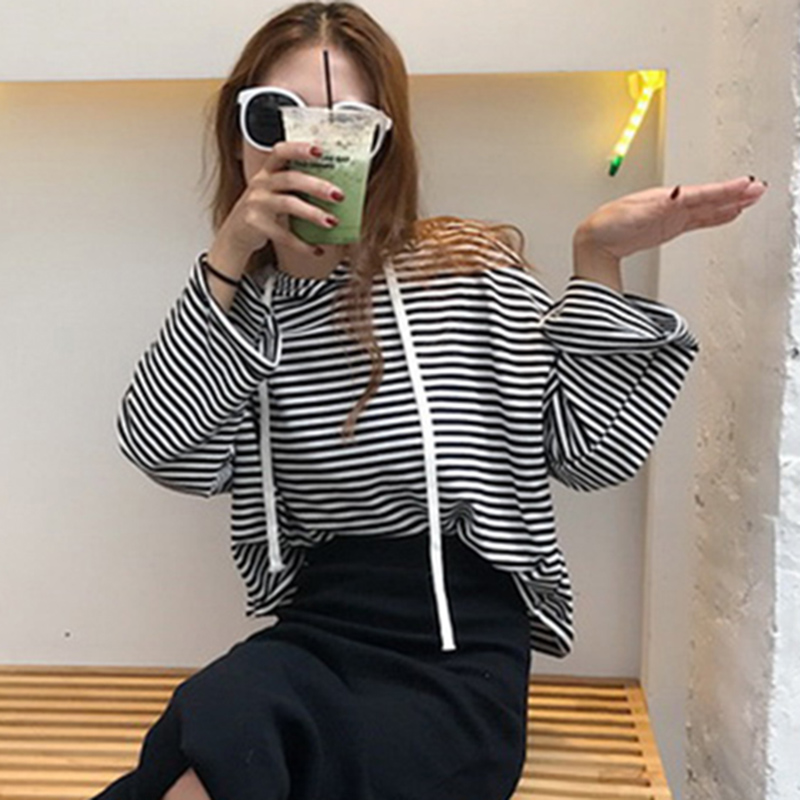 / 秋裝衛衣女2018新款韓版新款寬松顯瘦慵懶休閑橫條紋連帽長袖上衣