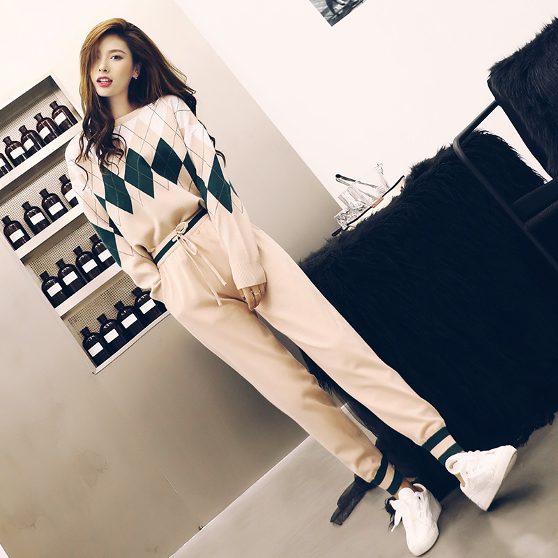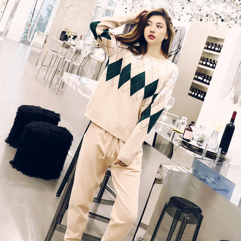 名媛氣質2018新款韓版秋季針織衫長袖休閑小腳褲套裝女時尚兩件套