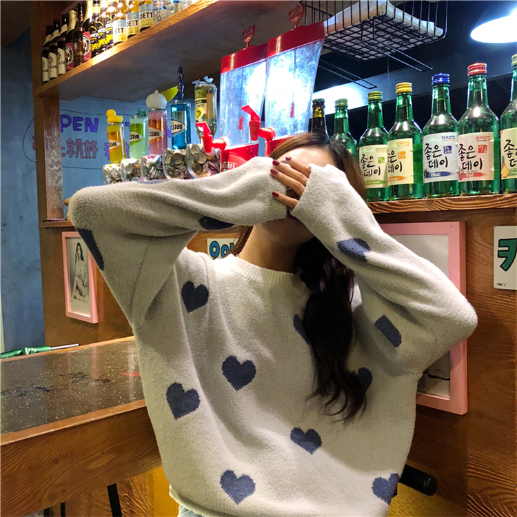 / 秋冬女裝韓版寬松百搭甜美慵懶風愛心網紅套頭針織衫毛衣上衣外套