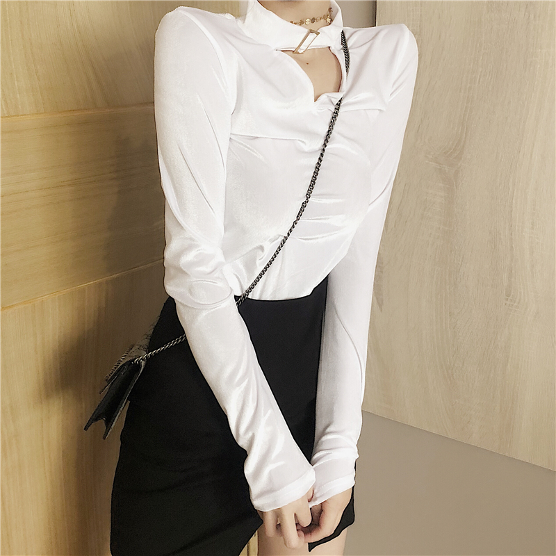 秋冬裝女2018新款港味復古小心機鏤空V領打底上衣修身長袖絲絨T恤