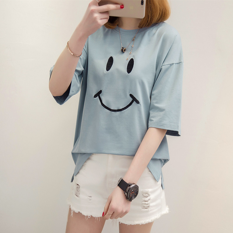 女裝夏裝新款潮白色t恤女短袖上衣寬松韓版純色打底體恤衫女