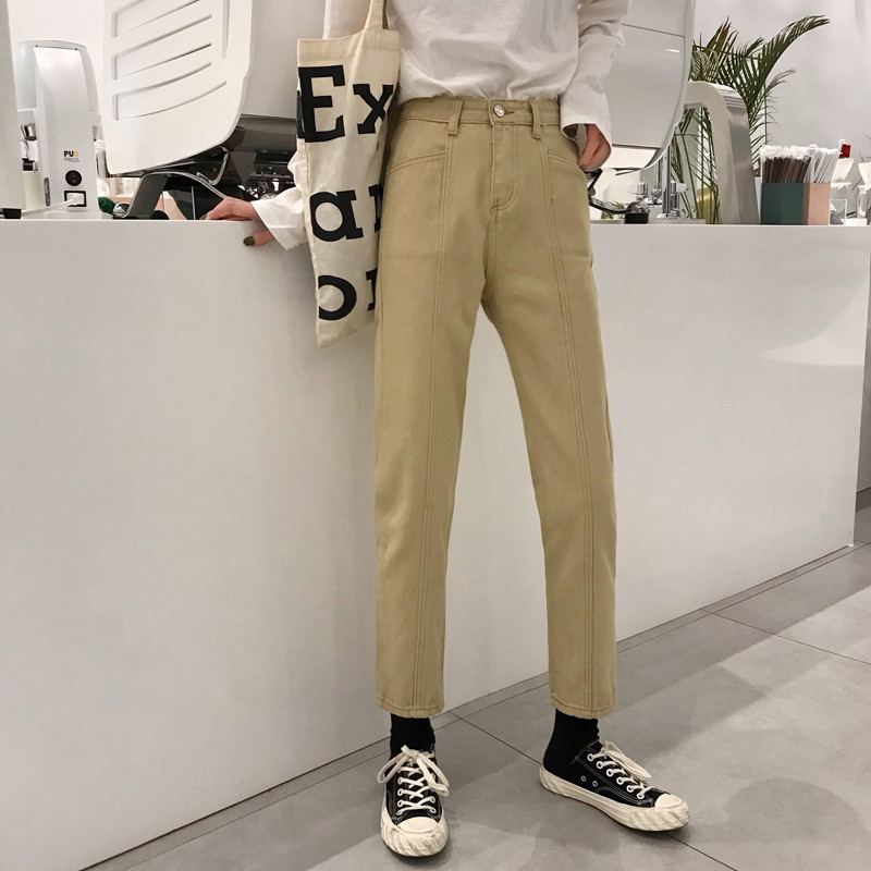 小腳褲秋冬女裝2018韓版高腰顯瘦牛仔褲學生寬松休閑直筒九分褲子