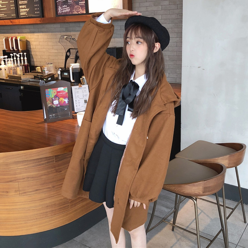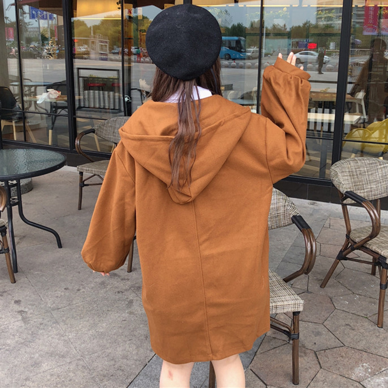 2018流行毛呢外套女秋冬裝新款赫本大衣學生連帽風衣休閑長袖開衫