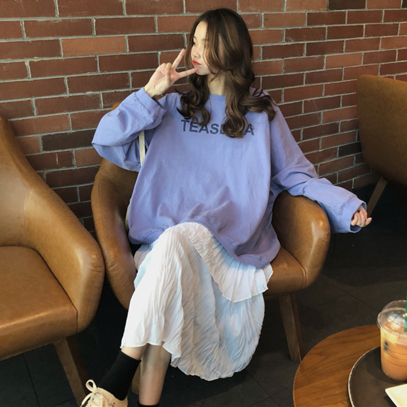 / 女秋裝新款韓版寬松字母套頭衛衣+高腰A字蛋糕裙學生長裙子兩件套
