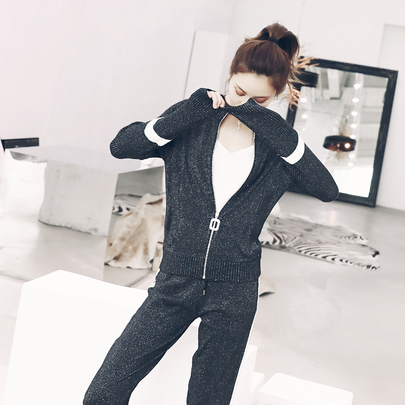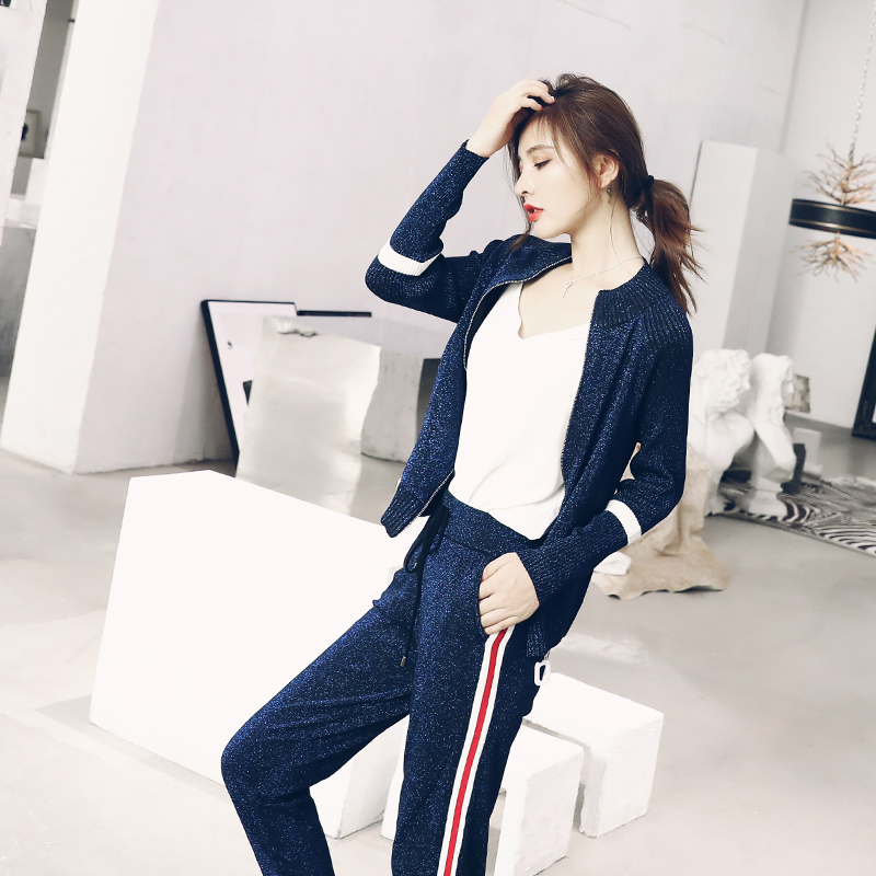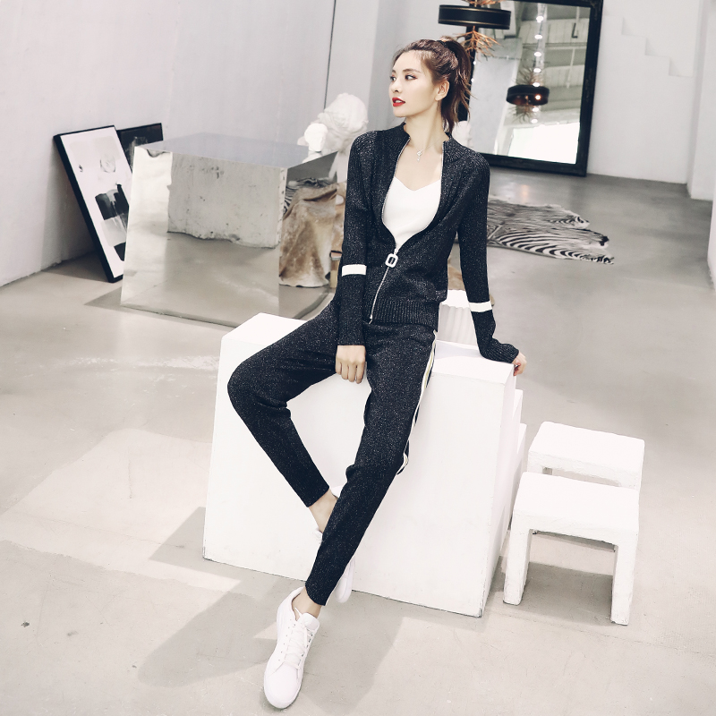 / 歐洲站2018秋季新款網紅時髦長袖開衫小腳褲子休閑兩件套針織套裝