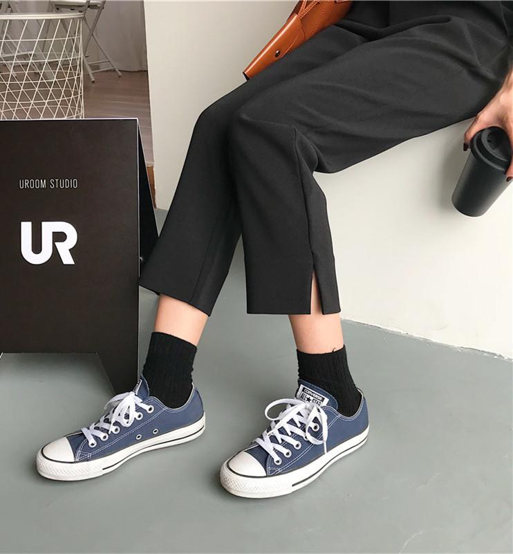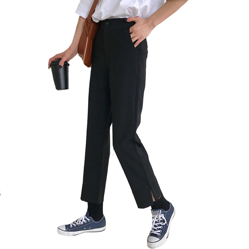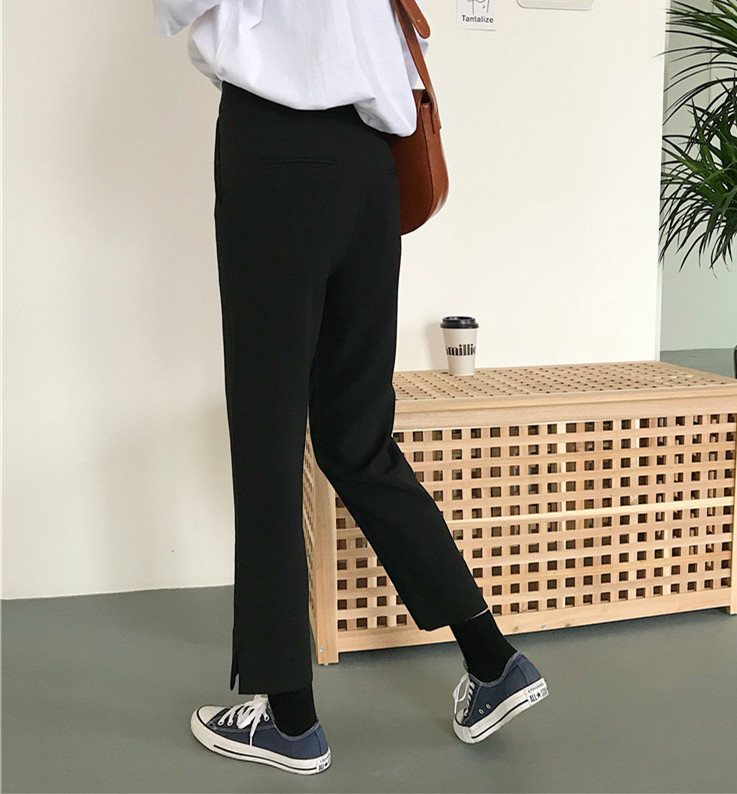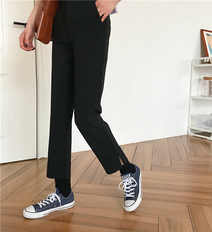 / 秋裝女裝韓版寬松百搭顯瘦直筒褲高腰開叉休閑褲九分褲闊腿褲長褲