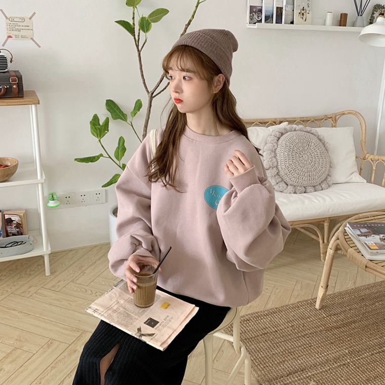 / 秋冬女裝韓版中長款寬松原宿風字母加絨加厚套頭超火衛衣上衣外套