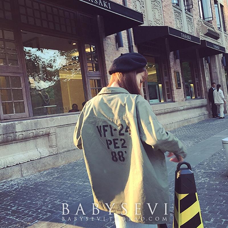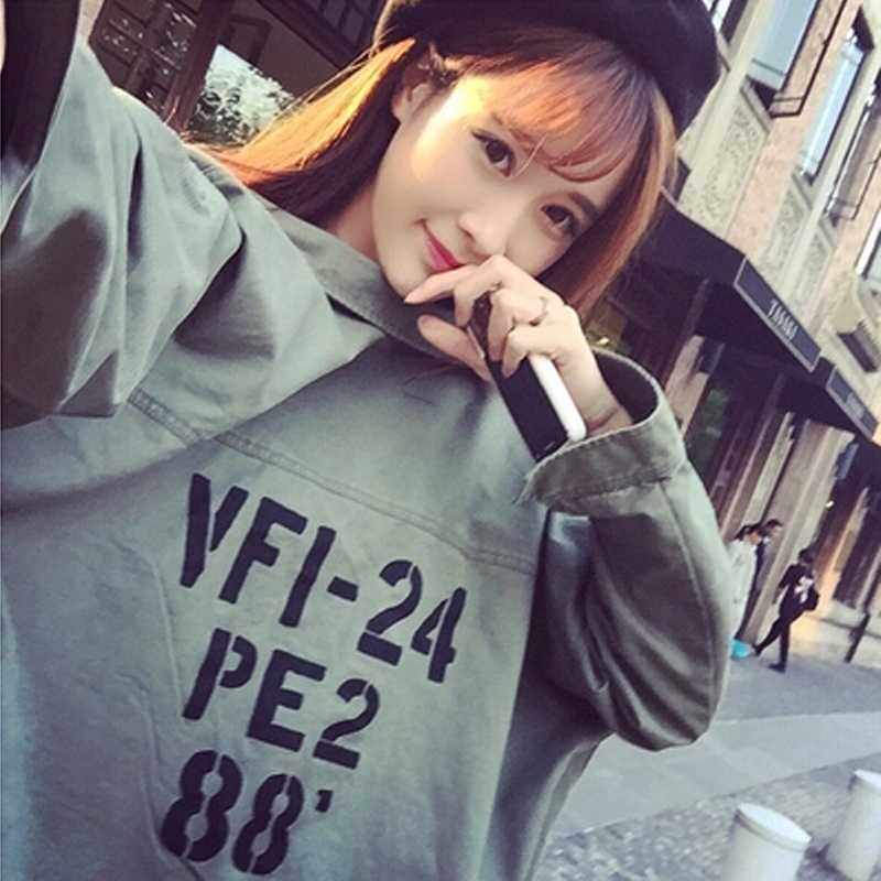 / 2017春裝新款韓版軍綠色字母印花寬松顯瘦薄款秋季外套女開衫上衣