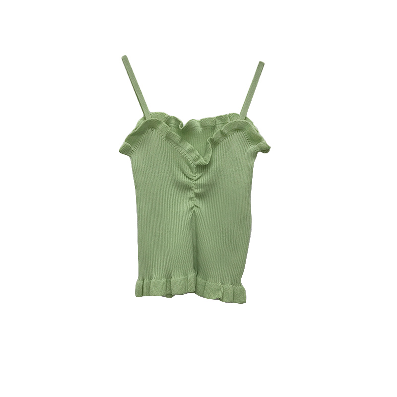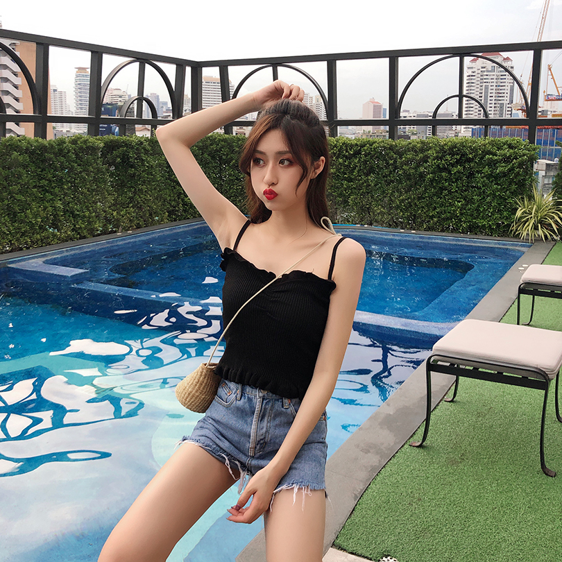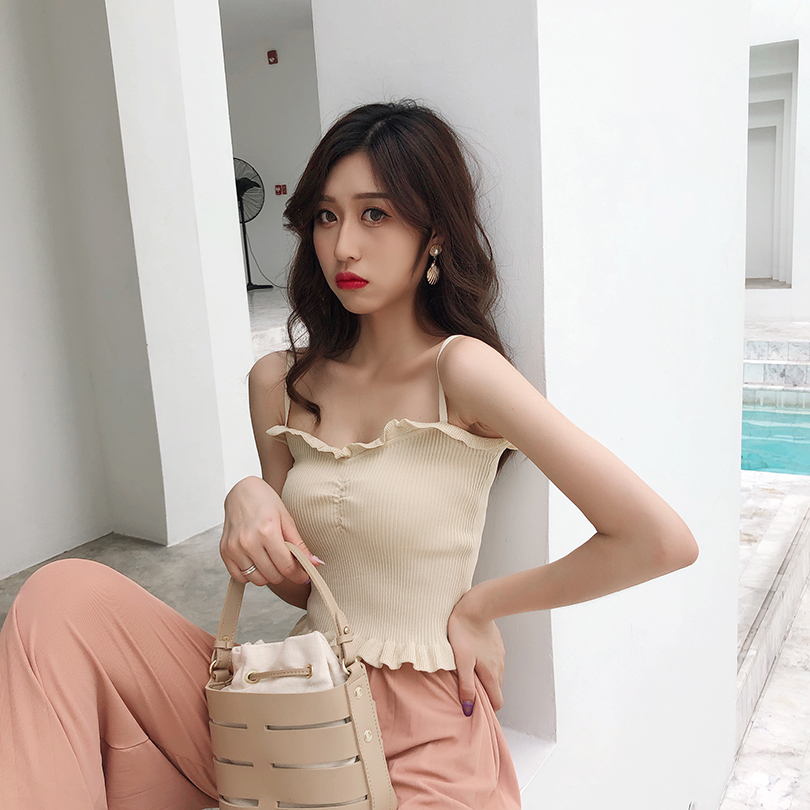 / 復古修身顯瘦純色木耳邊吊帶背心女秋2018新款百搭坑條針織上衣潮