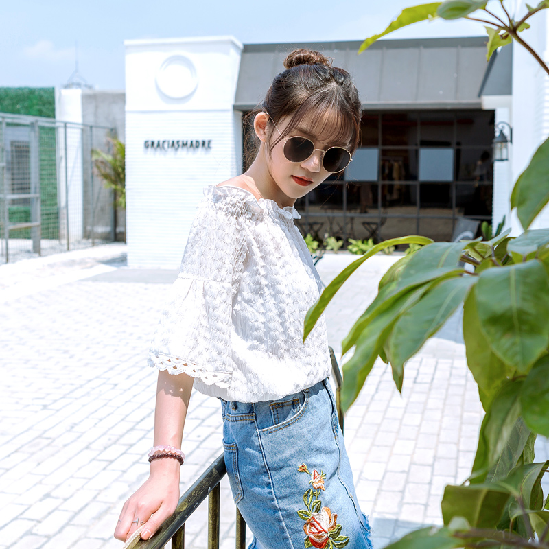 小喇叭拼蕾絲袖口的設計,輕松遮住拜拜肉的同時更顯仙氣
