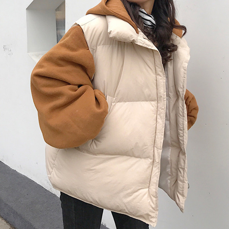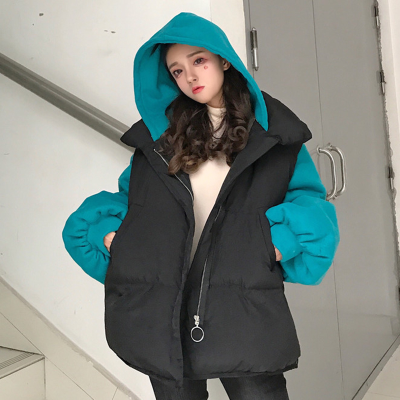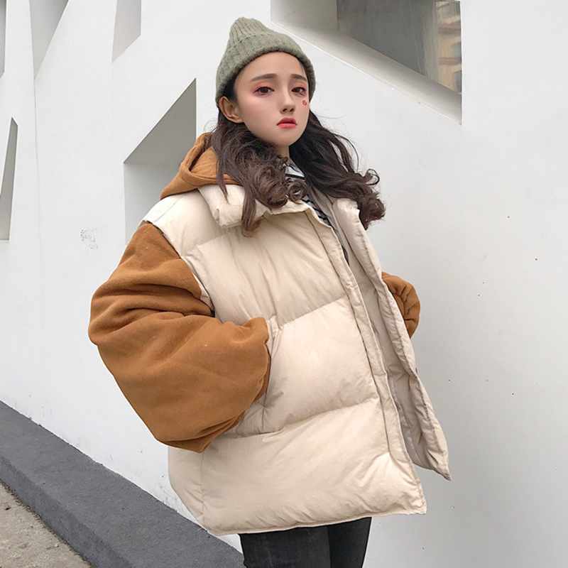 秋冬寬松棉衣外套2018新款女裝拼接燈籠長袖面包棉服學生棉襖上衣