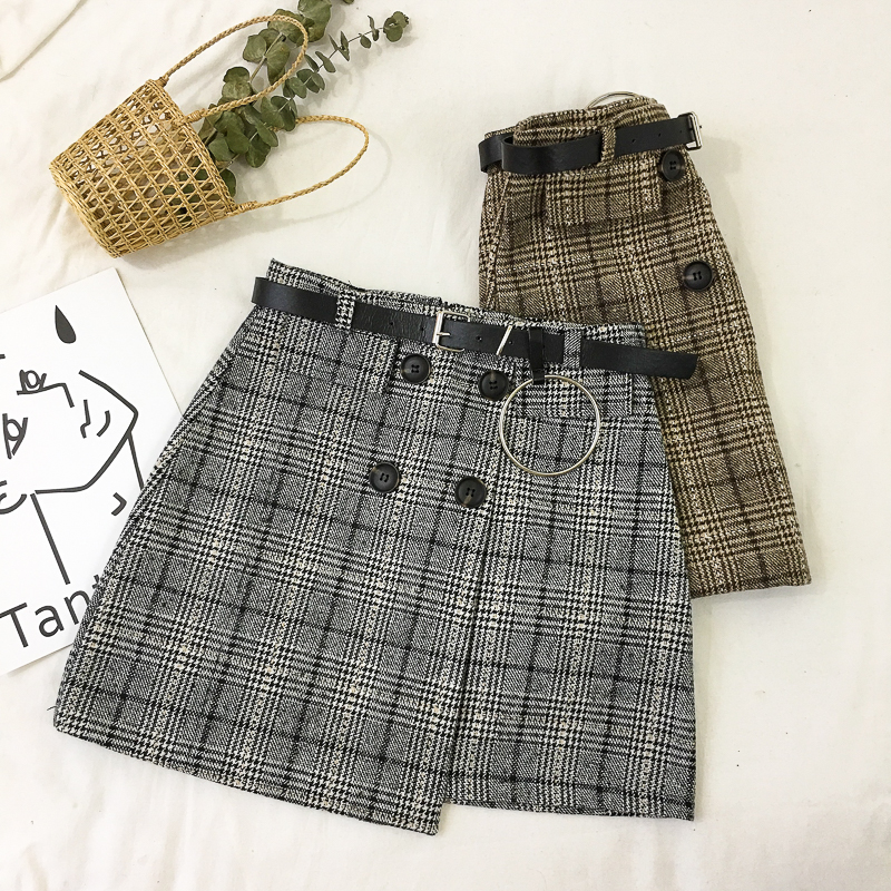 / 時尚韓版時尚復古毛呢格子A字短裙女秋冬季新款百搭高腰半身裙女