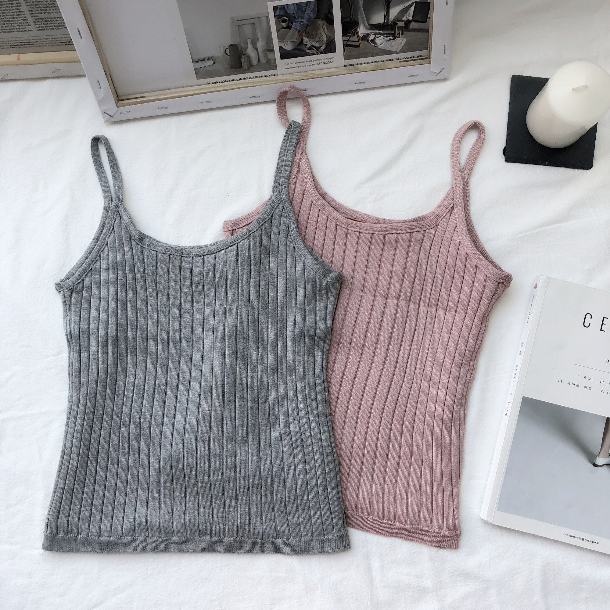 / 冬裝女2018新款時尚韓版氣質百搭加絨保暖修身吊帶背心打底衫女潮