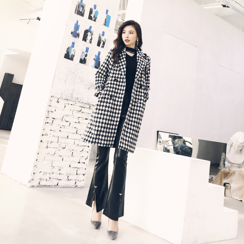 / 赫本風毛呢外套女中長款韓版2018新款秋冬季流行格子過膝呢子大衣