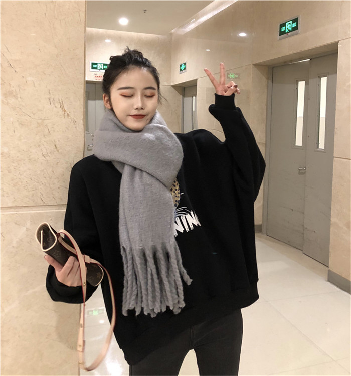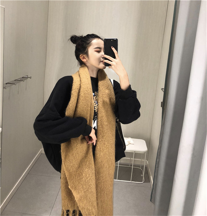 / 韓版秋冬季2018新款時尚百搭純色簡約女士加厚流蘇保暖圍巾圍脖女