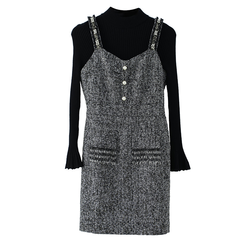 / 針織上衣毛呢連衣裙女秋冬季新款2018背帶裙兩件套小個子短款裙子
