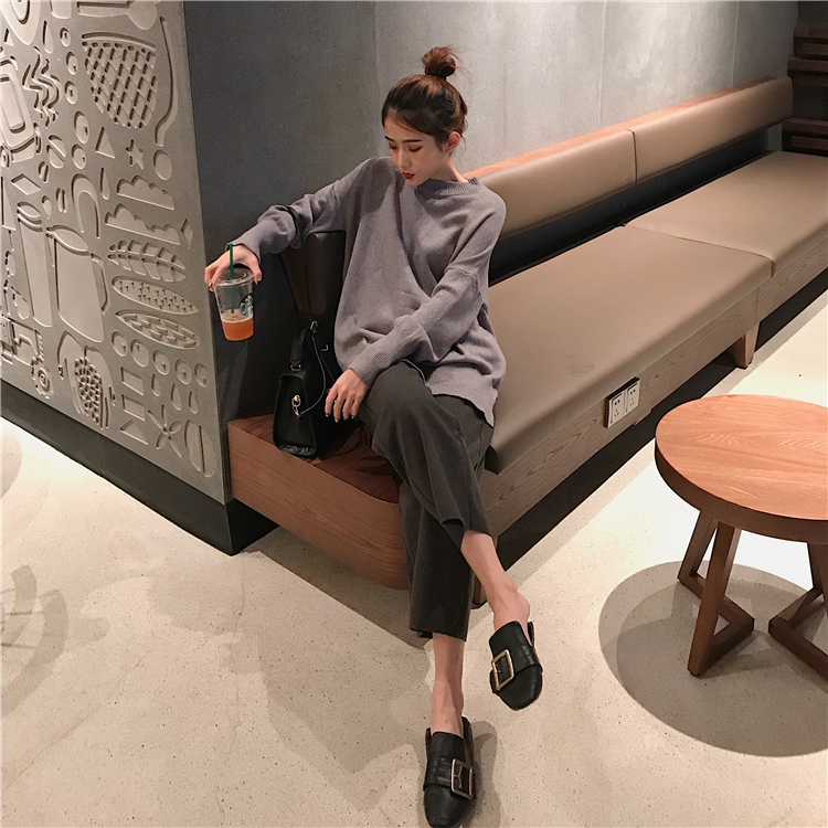 慵懶風網紅毛衣女2018新款兩件套裝復古寬松針織衫毛呢闊腿褲秋冬