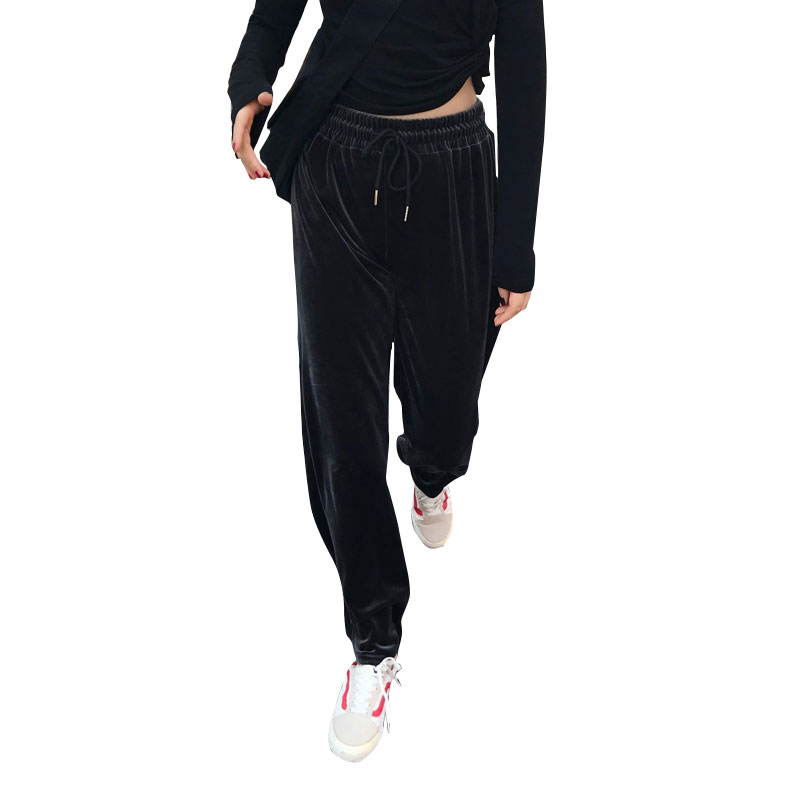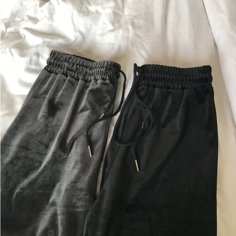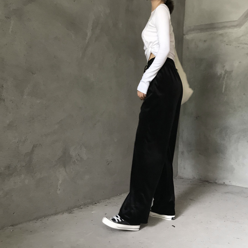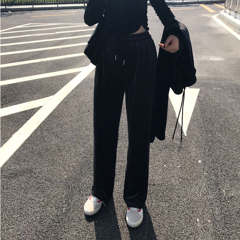 / 韓版chic絲絨垂順感直筒拖地長褲秋季新品時尚學生闊腿休閑褲2色