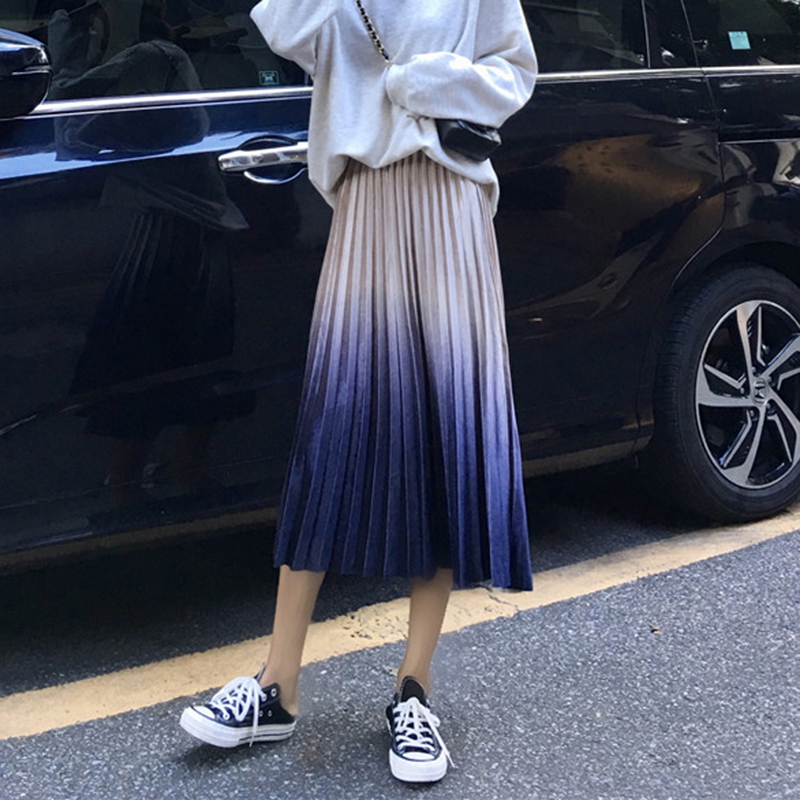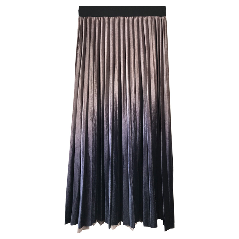 / 秋裝女新款漸變金絲絨百褶裙氣質顯瘦高腰a字半身裙復古中長裙子
