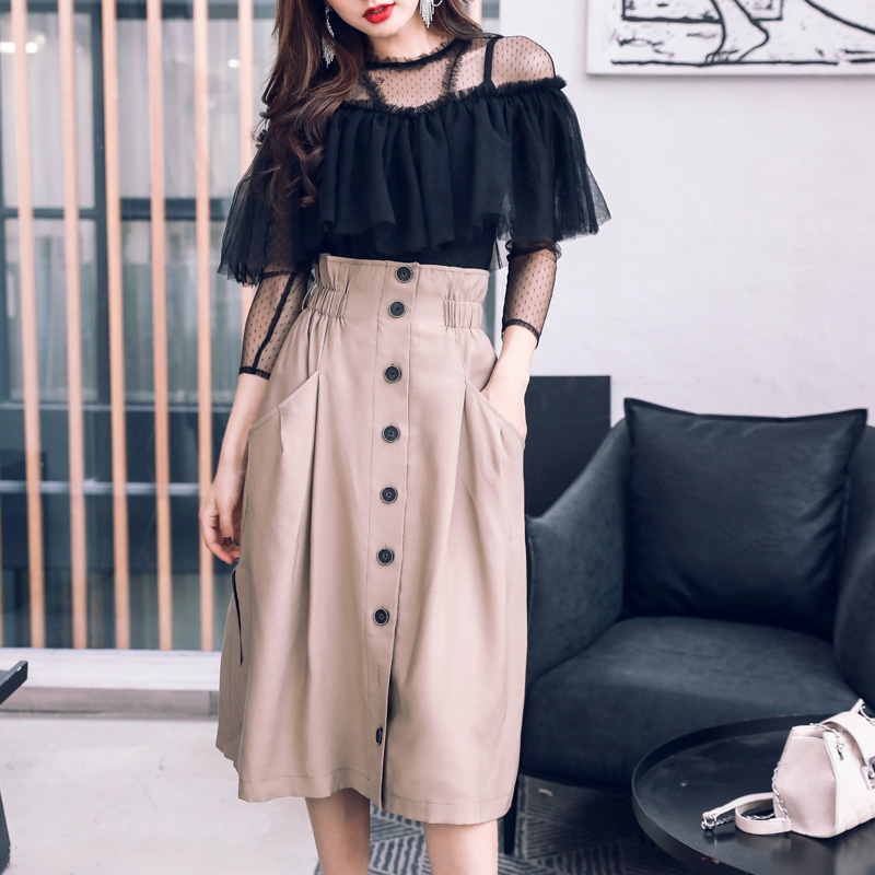 / 淑女網紅2018秋季新款氣質名媛蕾絲上衣時尚高腰半身裙兩件套裝女