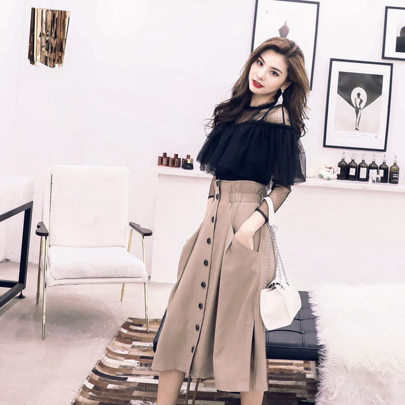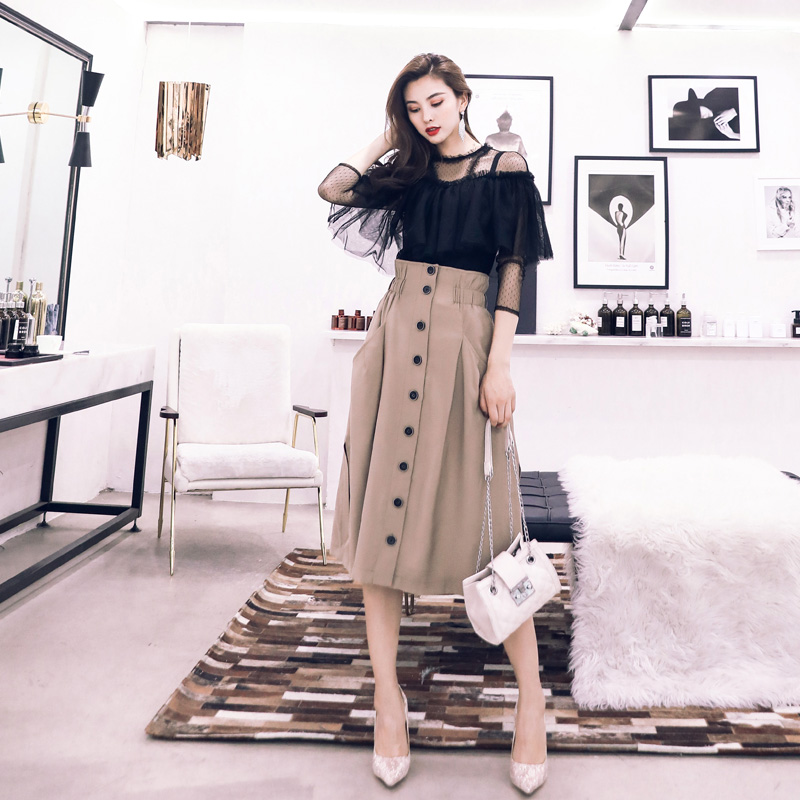 淑女網紅2018秋季新款氣質名媛蕾絲上衣時尚高腰半身裙兩件套裝女