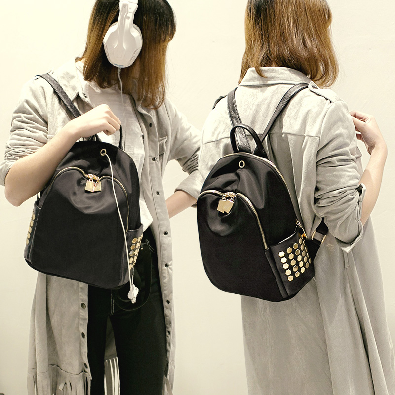 / 鉚釘雙肩包女韓版時尚個性百搭牛津帆布包包新款女士背包女潮