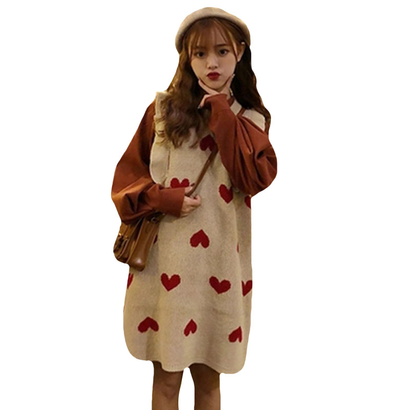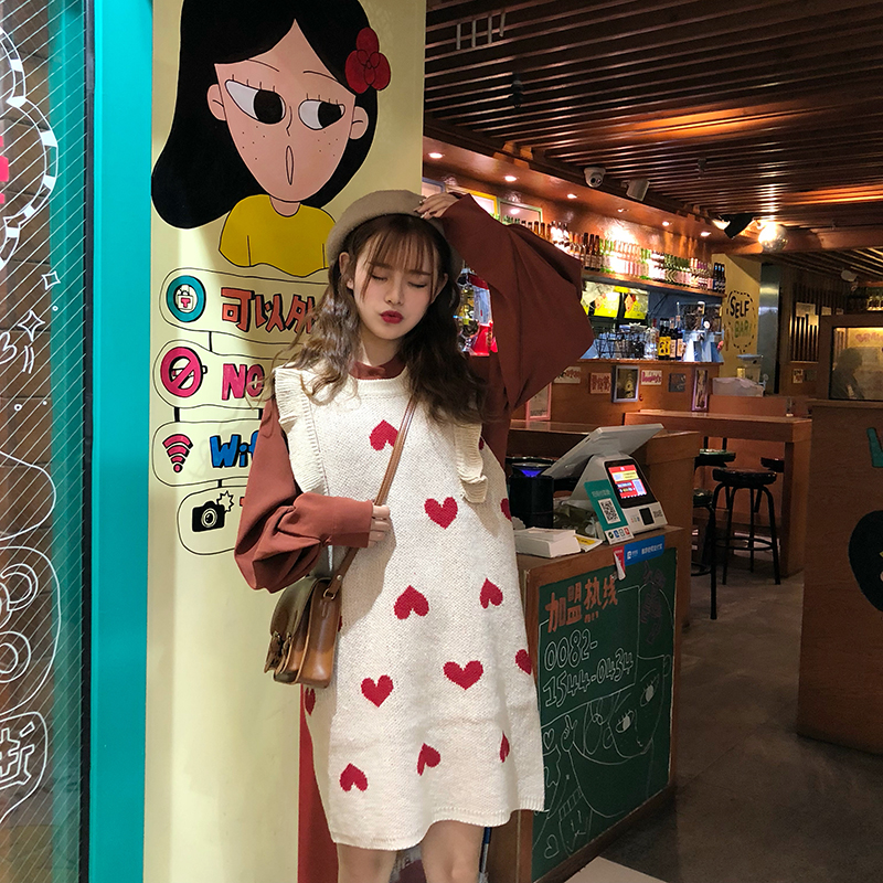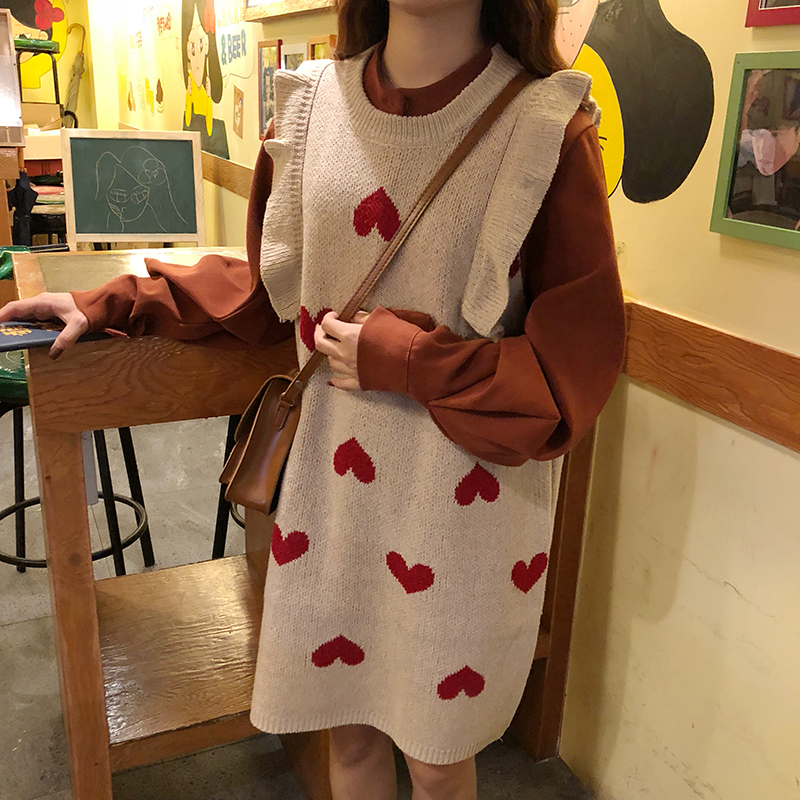可可里小姐~冬季女裝新款寬松簡約襯衫內搭+愛心中長款針織背心裙