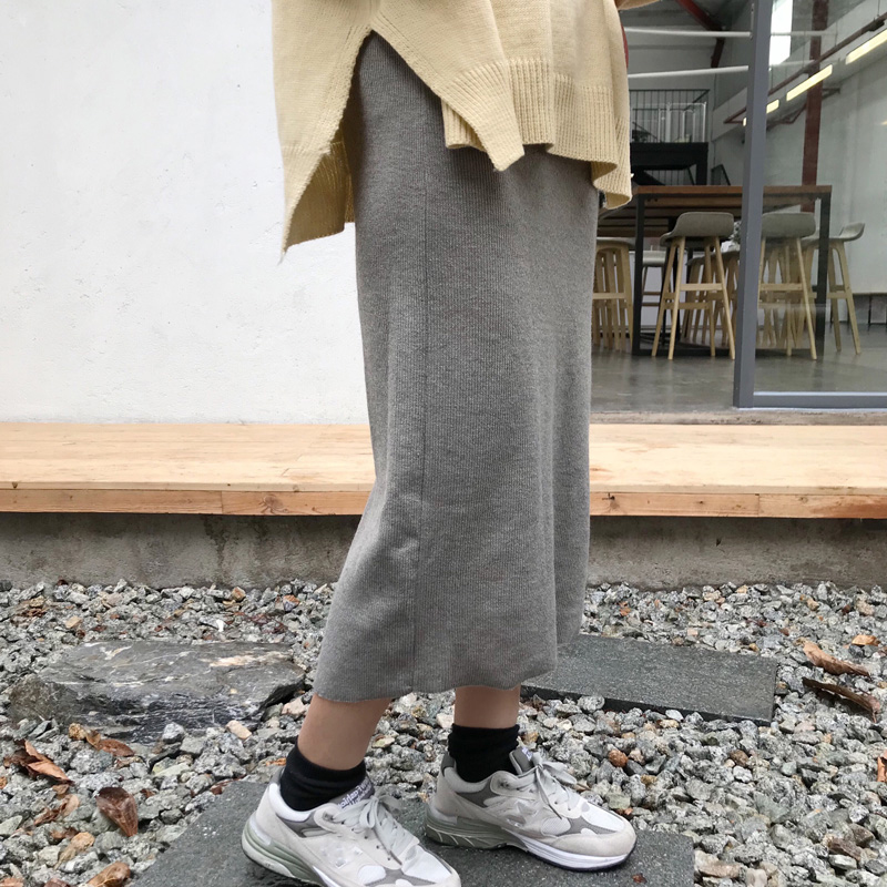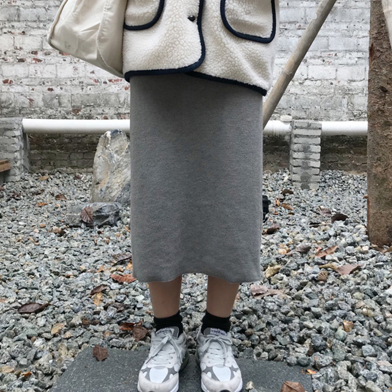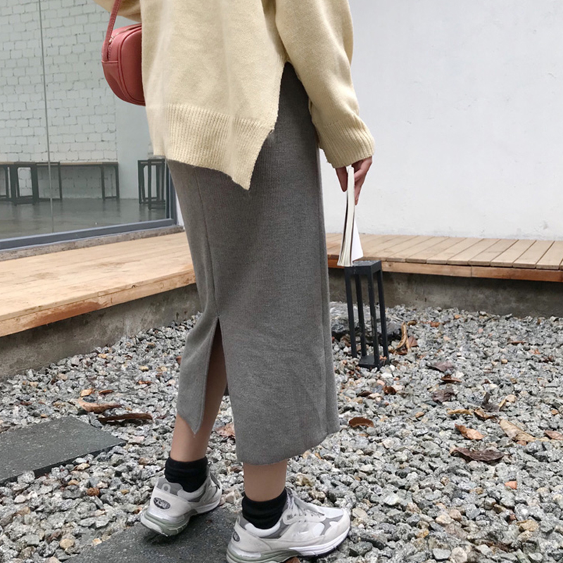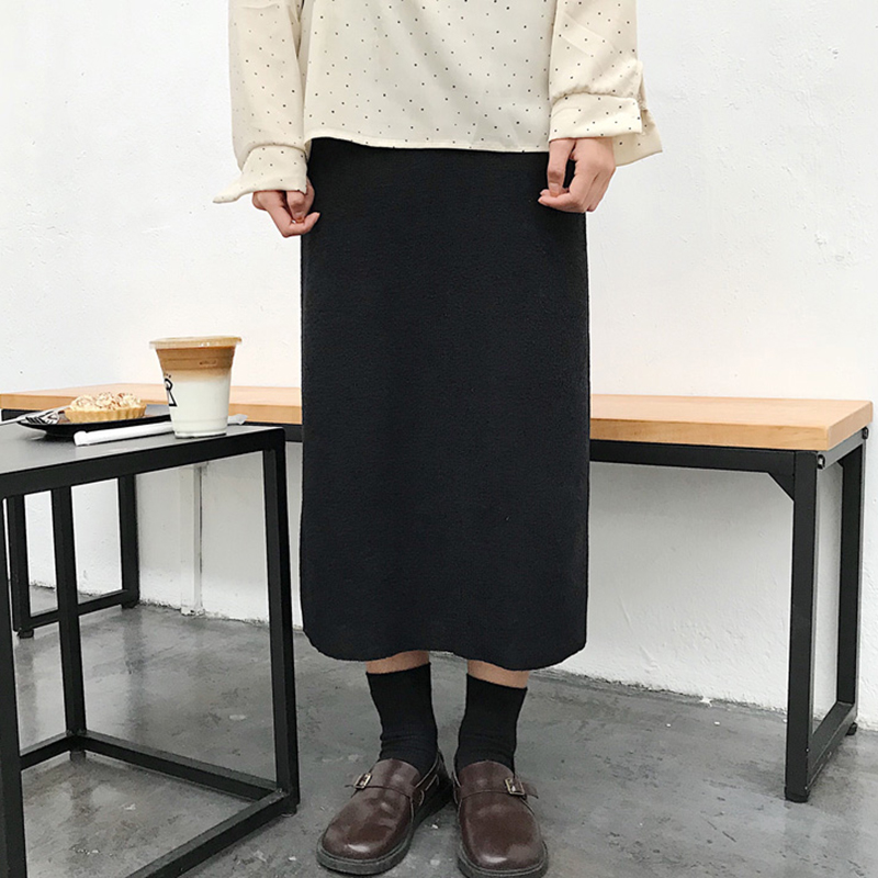 chic港味中長款開叉半身裙子女秋冬裝2018新款高腰黑色顯瘦A字裙