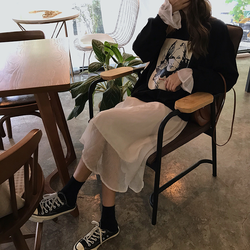 時尚百搭人頭印花長袖圓領衛衣2018新款女長袖韓版寬松顯瘦上衣潮