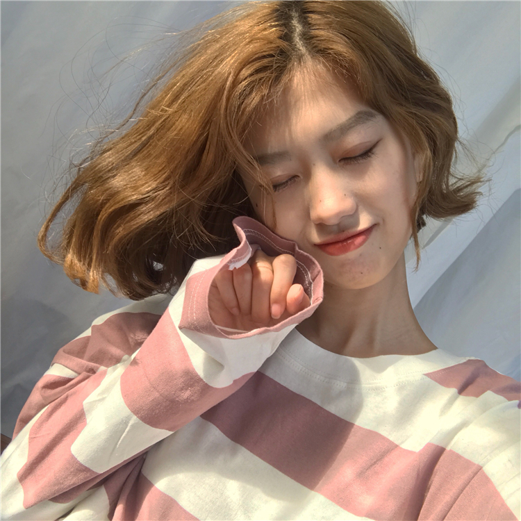 / 秋裝女裝韓版寬松百搭顯瘦拼色條紋T恤學生長袖休閑顯瘦體恤上衣