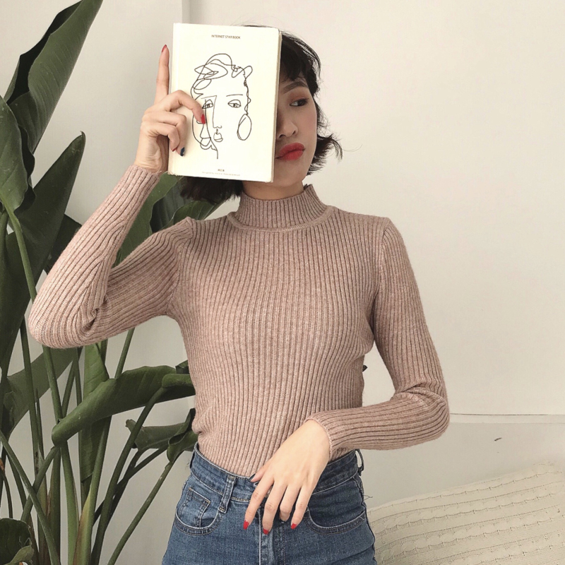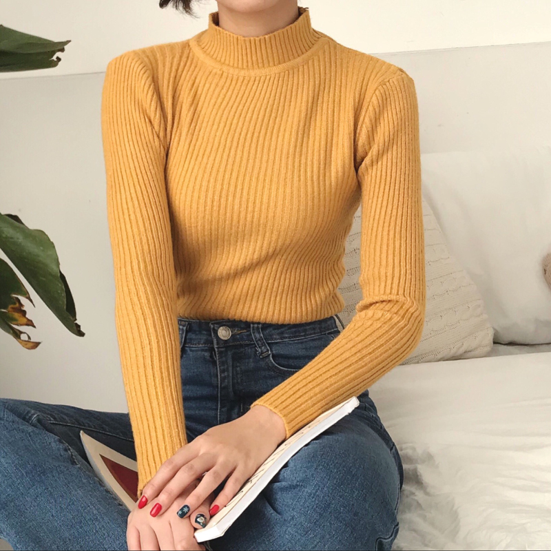 純色中高領加厚坑條打底針織衫內搭保暖毛衣女秋冬2018新款上衣潮
