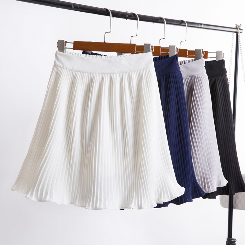 中長款百褶裙春秋新款a字短裙夏高腰韓版女百搭雪紡半身裙子