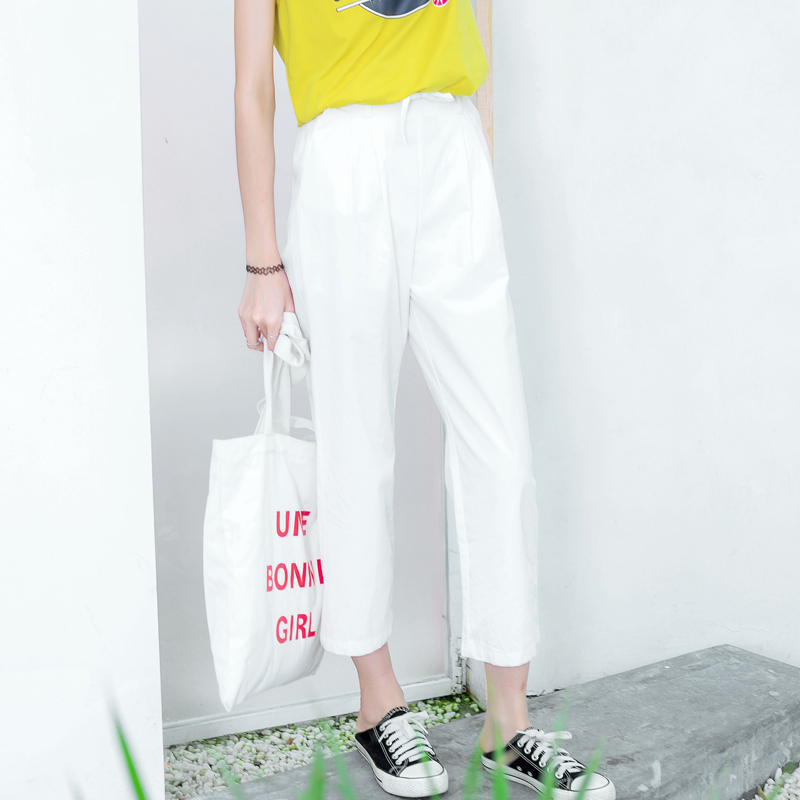 松緊高腰的九分褲,高腰的穿法上身秒變大長腿