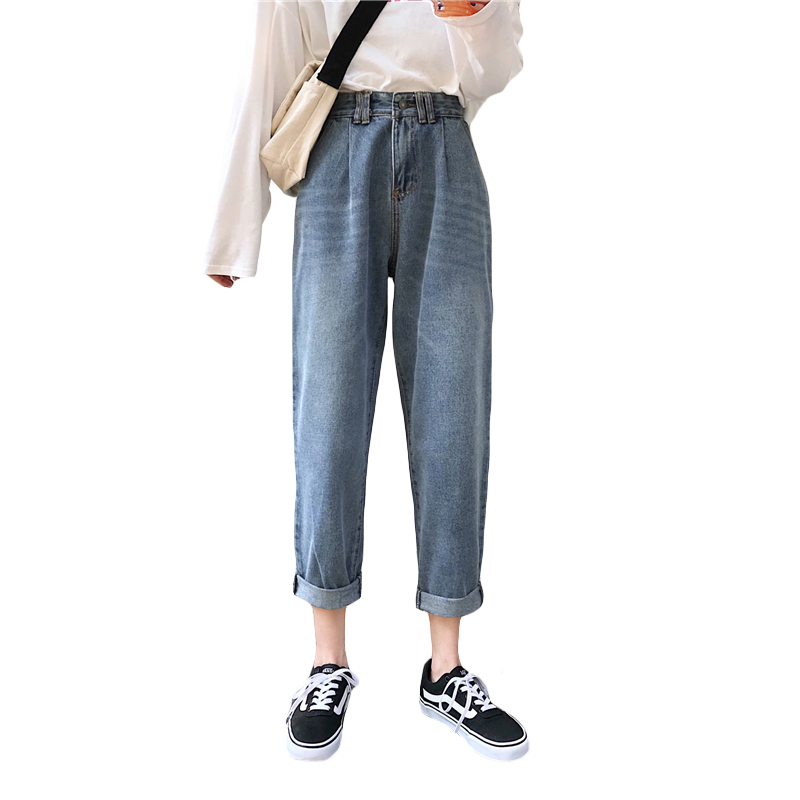 秋裝女2018新款復古港味九分褲學生韓版寬松高腰原宿直筒牛仔褲女