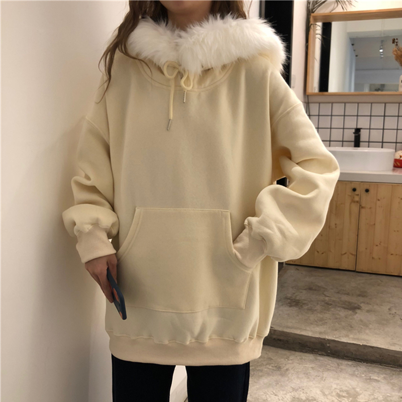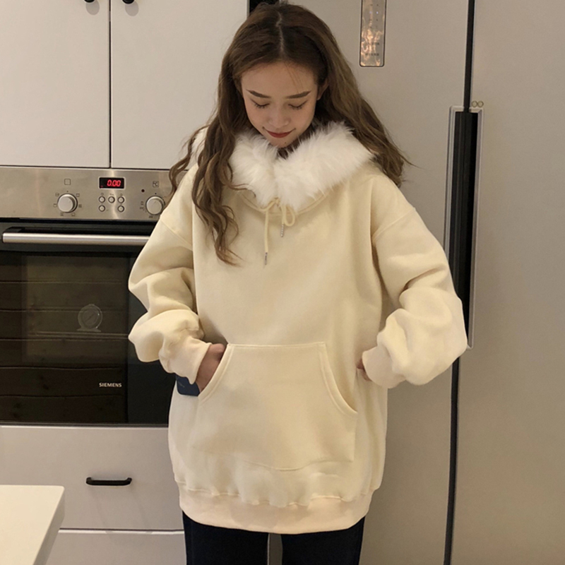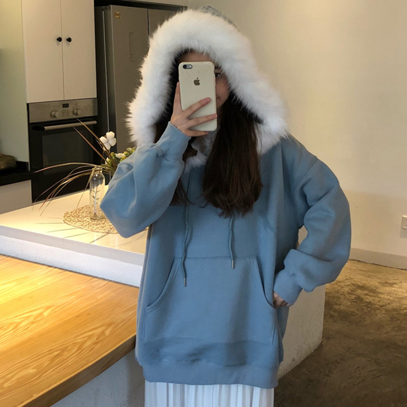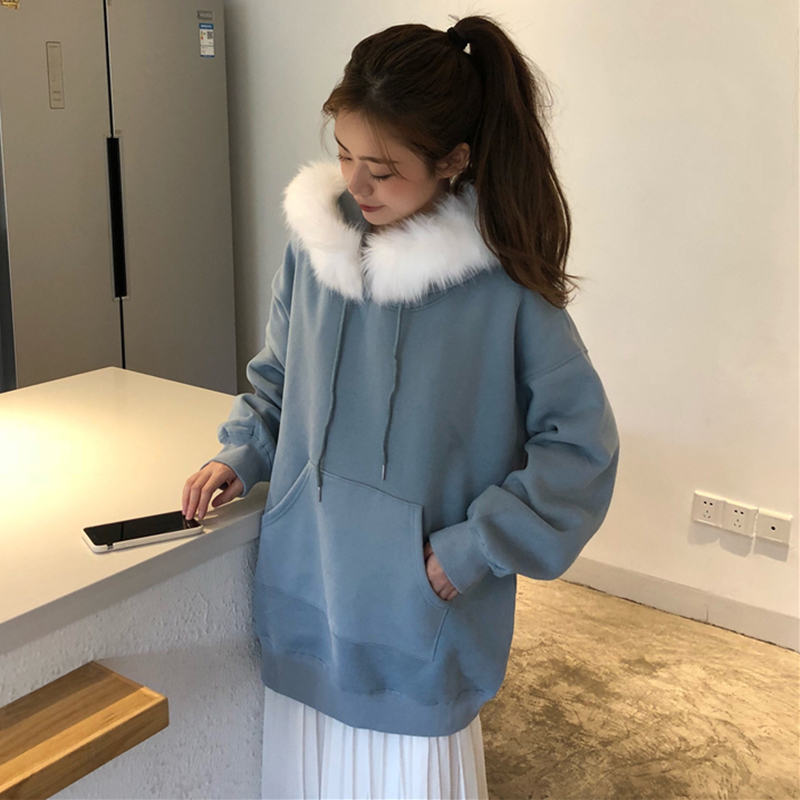 時尚毛領加絨衛衣2018新款女秋冬裝港風學生寬松外套長袖慵懶上衣