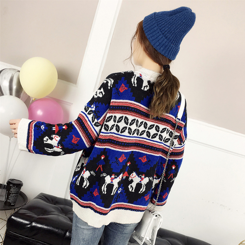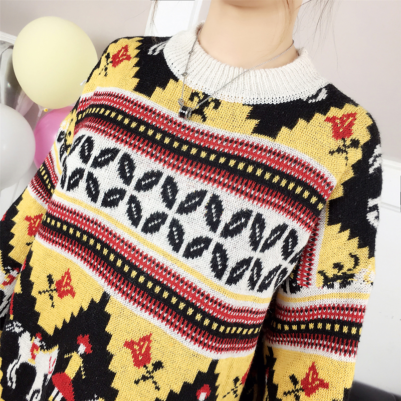 慵懶風套頭毛衣外套女秋冬裝2018新款韓版寬松加厚撞色條紋針織衫