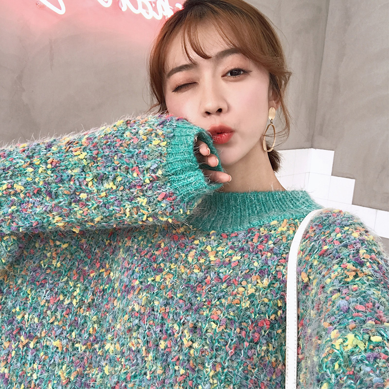 韓版時尚網紅同款2018新款秋寬松慵懶風套頭毛衣女中長款長袖上衣
