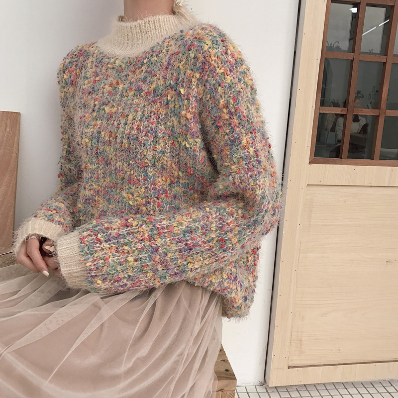 / 港味慵懶風套頭毛衣女2018新款秋百搭長袖寬松圓領花線針織上衣潮