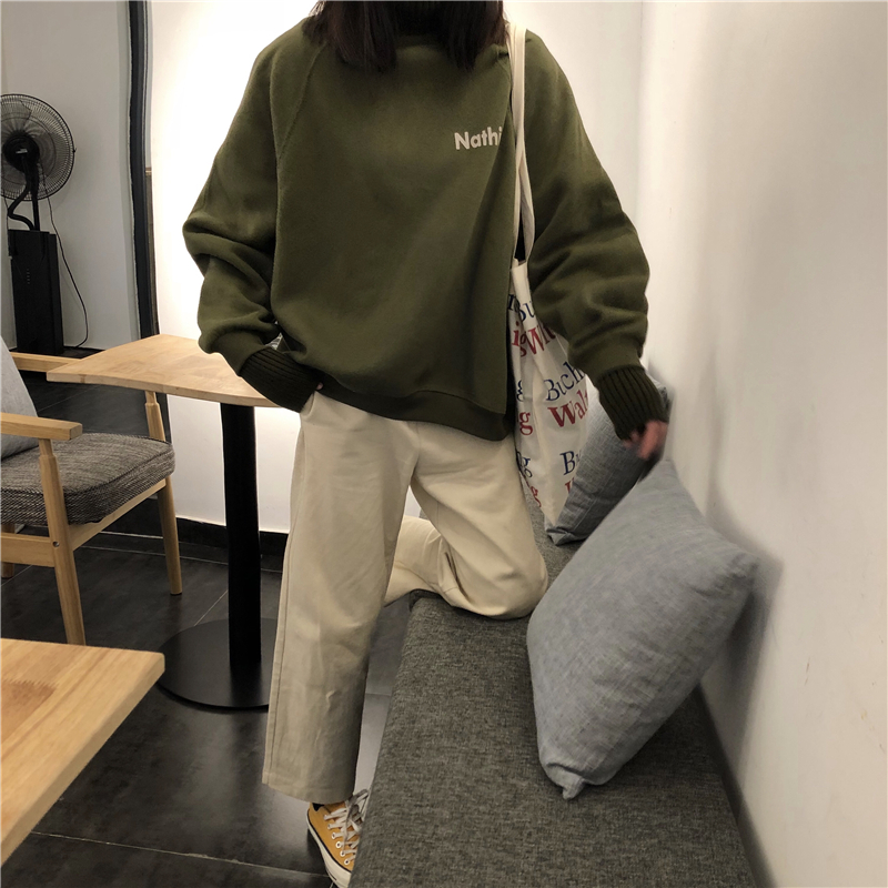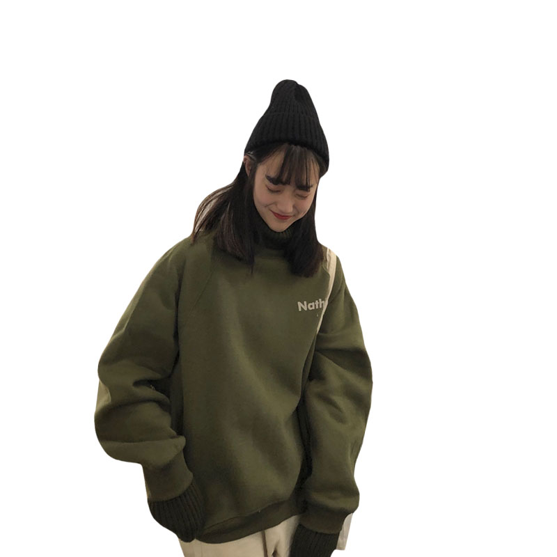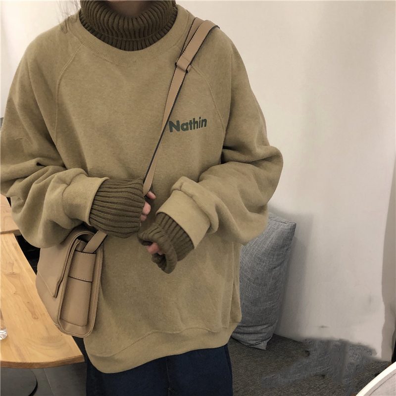 / 秋冬韓版2018新款慵懶風復古寬松套頭加絨拼接高領字母衛衣外套女