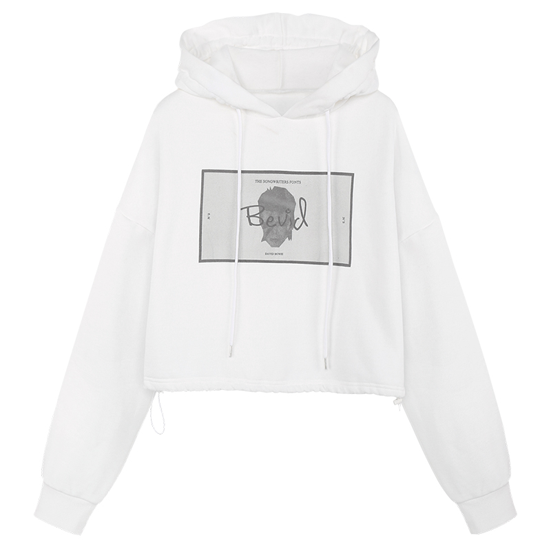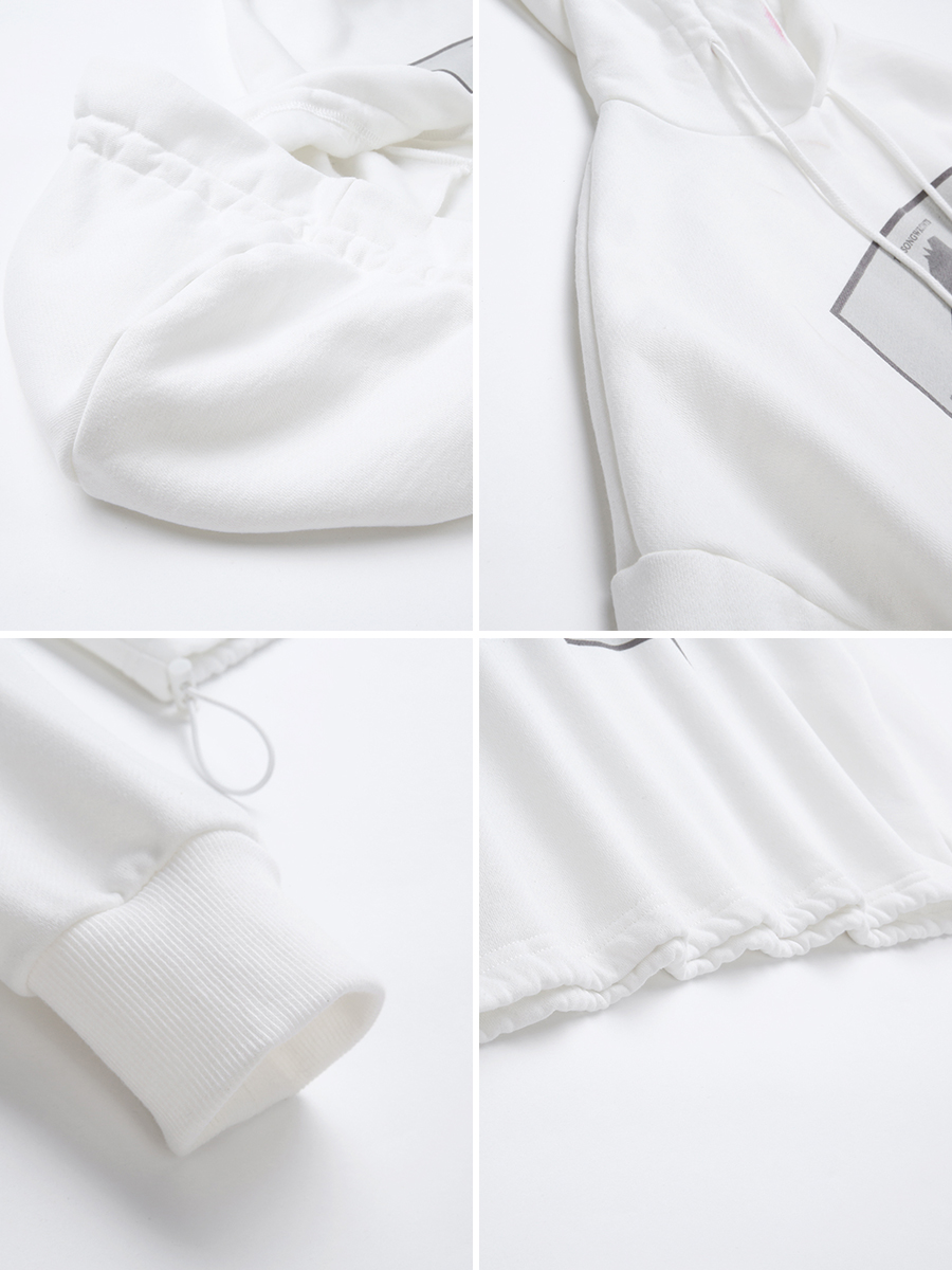 MG小象短款白色衛衣女秋冬2018新款印花長袖寬松學生連帽bf風上衣
