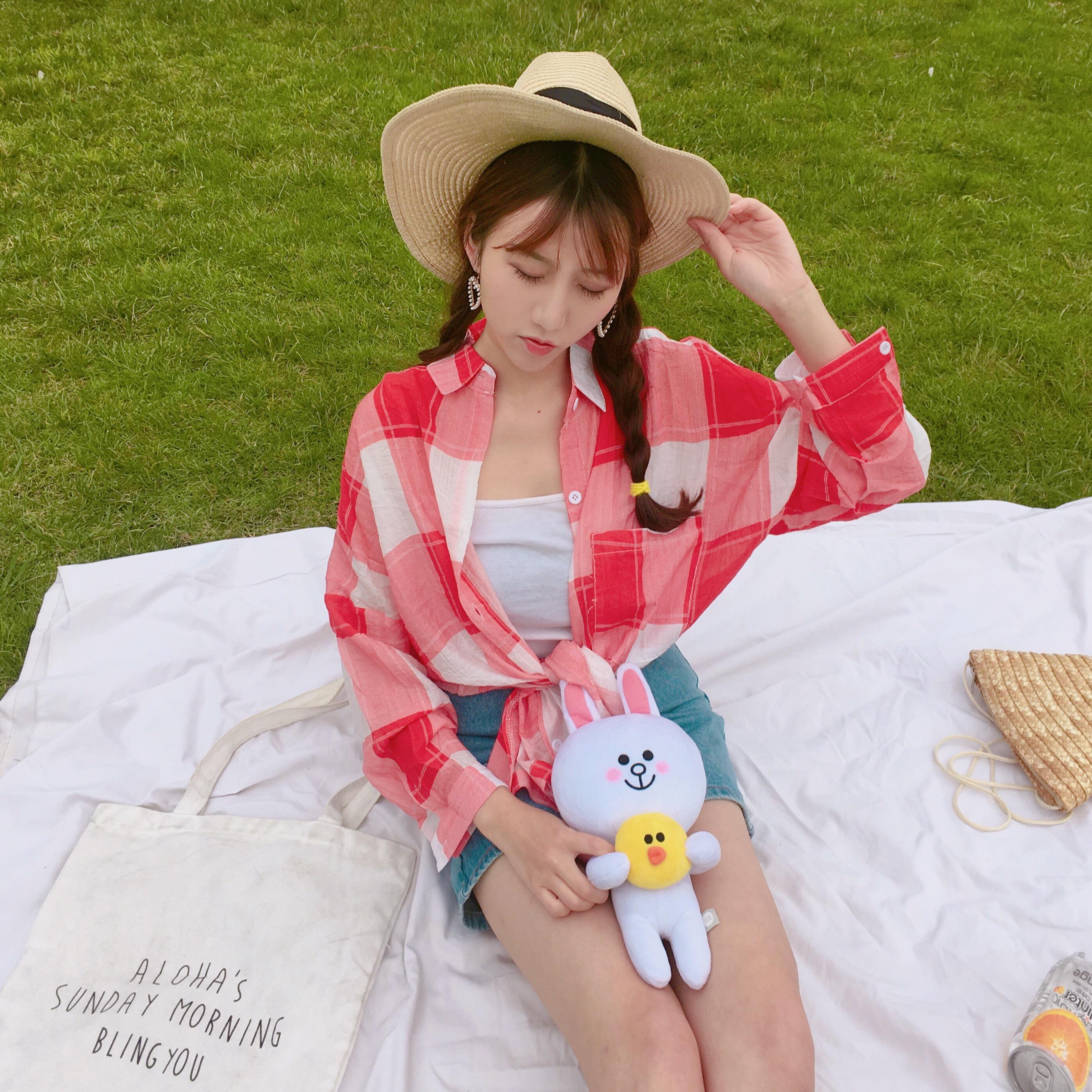 格子襯衫女裝夏新款小清新韓版寬松中長款防曬衣薄外套開衫上衣服