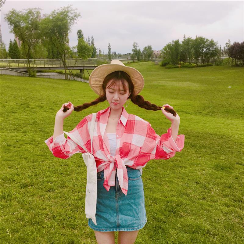 / 格子襯衫女裝夏新款小清新韓版寬松中長款防曬衣薄外套開衫上衣服