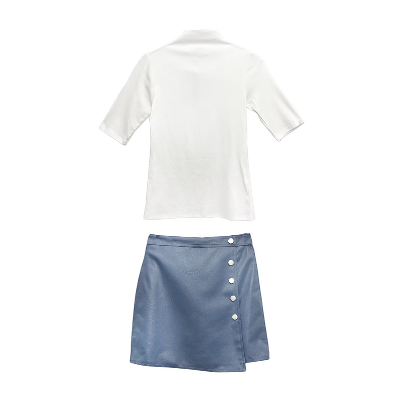 / 早秋新款基礎純色半高領T恤+高腰顯瘦皮短裙套裝分開拍