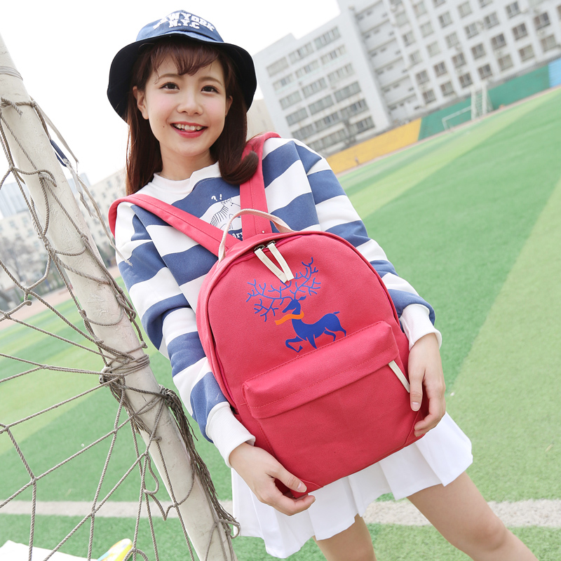 / 時尚2016新款書包帆布背包女中學生小鹿雙肩包女潮學院風書包