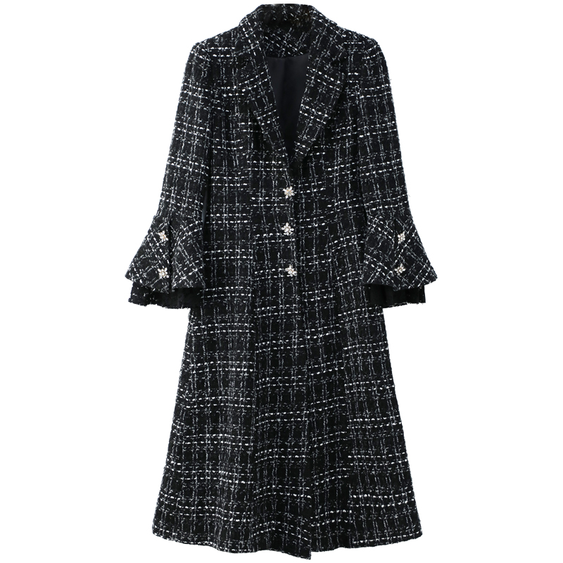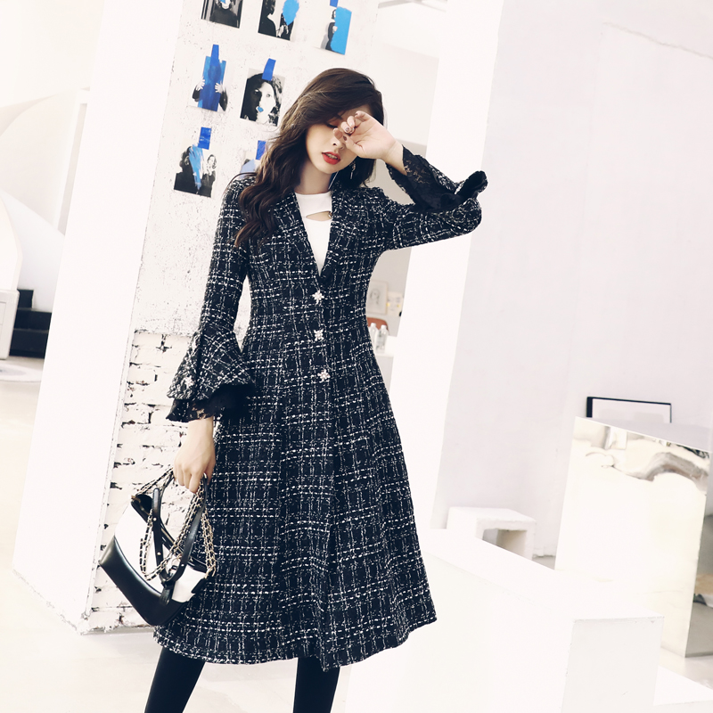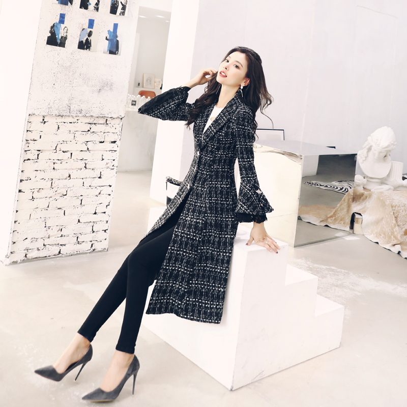 / 名媛氣質毛呢外套女長款過膝復古2018秋冬新款中長款格子呢大衣潮