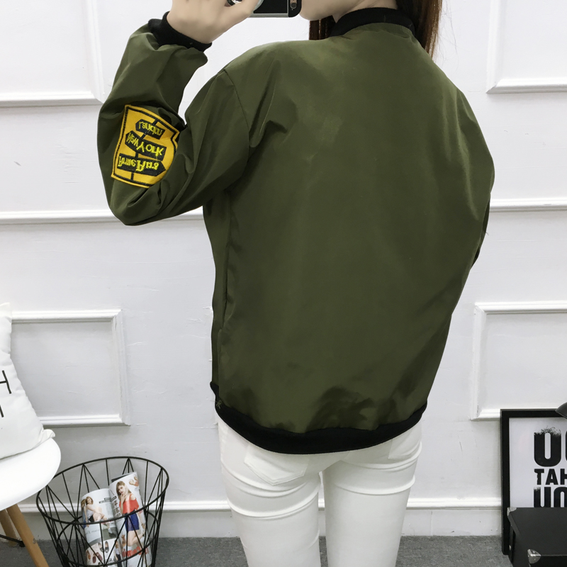 短外套女2017春裝新款女裝軍綠色小外套薄修身棒球服飛行員夾克女